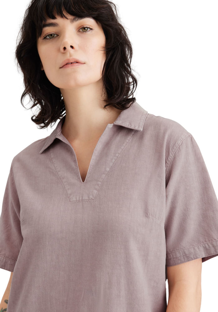 Estamos renovando el clásico mini vestido con un cuello abierto, mangas cortas y bolsillos de parche frontales. El corte amplio proporciona comodidad durante todo el día. Úsalo solo o combínalo con una casaca o cárdigan. Un mini vestido nuevo y mejorado.